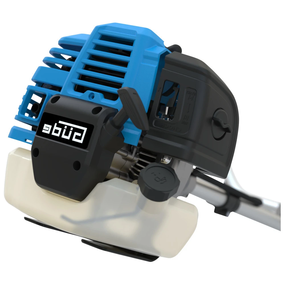 Zur Ausstattung der Motorsense gehören ein Wirbelblatt mit 8 Zähnen, ein Sternblatt mit 4 Zähnen, eine Fadenspule und eine starre Welle. Das komfortable Tragegurtsystem rundet den sehr guten Gesamteindruck ab.