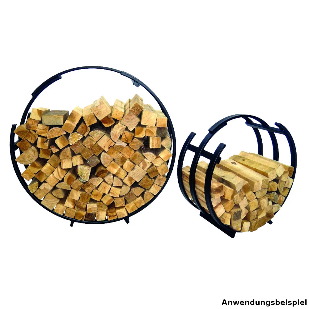 - 1 x Kaminholzständerset 2 Stück rund aus Stahl in Schwarz